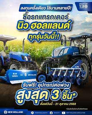 เพียงซื้อรถแทรกเตอร์นิว ฮอลแลนด์ ทุกรุ่น รับสิทธิพิเศษคุ้ม 3 ต่อ