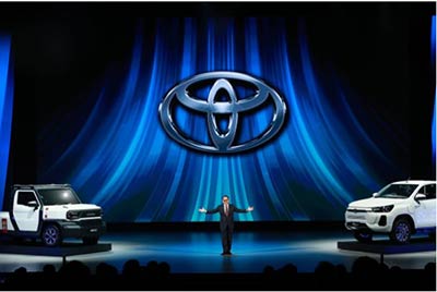 โตโยดะ ขึ้นเวทีกล่าวสำนึกในพระมหากรุณาธิคุณ พระบาทสมเด็จพระเจ้าอยู่หัวรัชกาลที่ 9 และพระบรมวงศ์ทุกพระองค์ ขอบคุณพนักงาน ซัพพลายเออร์ พันธมิตรทางธุรกิจ และคณะรัฐบาลไทย รวมทั้งสื่อมวลชน ประเด็นใหญ่ที่โตโยต้ากำลังจะทำคือ บุกปิกอัพอีวี โดยจะส่งไฮลักซ์ รีโว่พลังงานไฟฟ้า ลงตลาดในปี 2566 และพร้อมส่ง โตโยต้า ปิกอัพไซซ์เล็ก ภายใต้โครงการไอเอ็มวี ซีโร่ (IMV 0) ลงตลาดเพื่อเป็นอีกหนึ่งทางเลือกให้คนไทย
